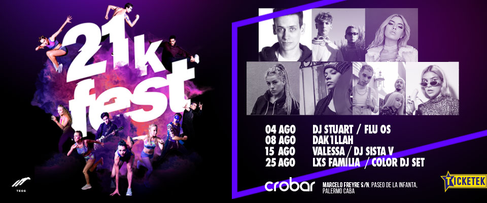 el 21KFEST, que contará con cuatro fechas el 4, 8, 15 y 25 de agosto en Crobar.